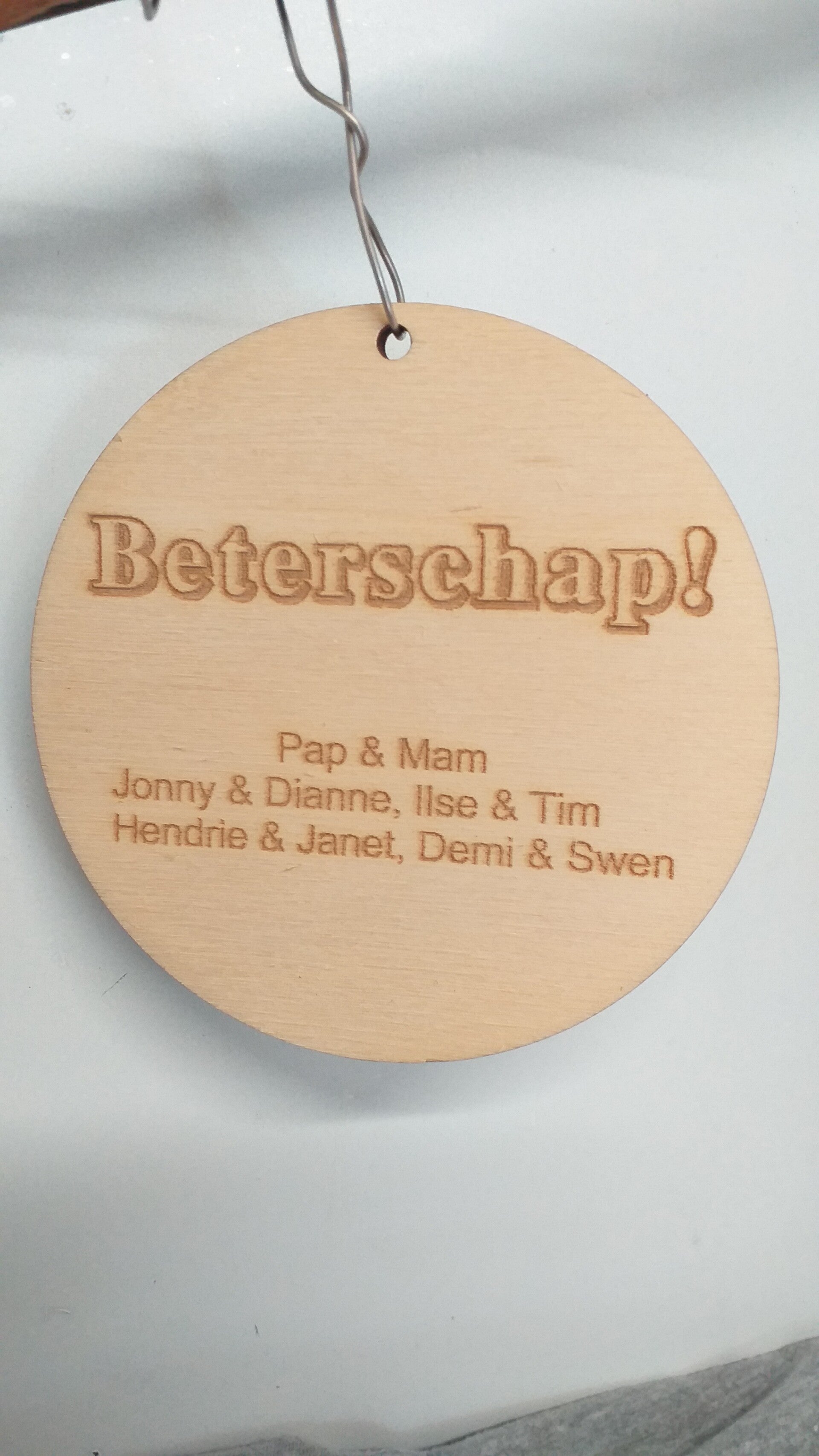 Leuke houten hanger voor aan een mooi beterschap cadeau. Je hangt het leuk aan een fruitmand bijvoorbeeld!